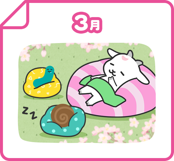 可愛いメグたんが月替わりで登場します♪季節の衣装に扮したメグたんを毎月チェックしてみてね!