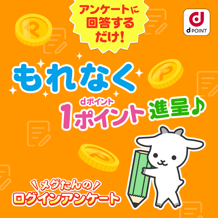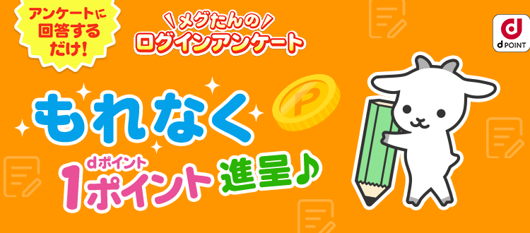 - アンケートにご回答いただくと、dポイント(通常ポイント)を1ポイント進呈します。