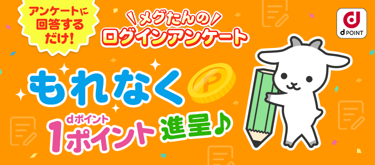 ログインして「メグたんのログインアンケート」に回答するともれなく1ポイントゲット!