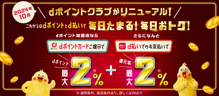 dポイントカード+d払いで最大4%還元!毎日たまって毎日おトクに!
